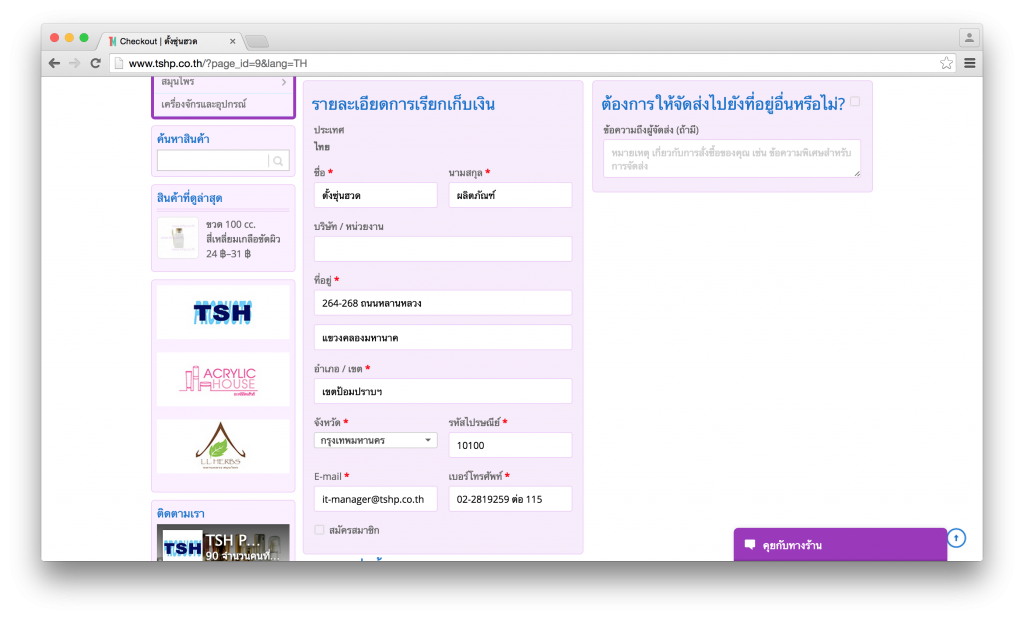 5.  การสั่งซื้อสามารถ Login เพื่อเข้าสู่ระบบ หรือไม่ต้องเป็นสมาชิกก็ได้ (ป้อนข้อมูลรายละเอียดการเรียกเก็บเงิน)Screen Shot 2558-08-16 at 9.32.40 AM