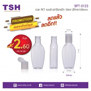 ขวดPETแบนรีใส+ฝาป๊อกแป๊กขุ่นใส 50 ml